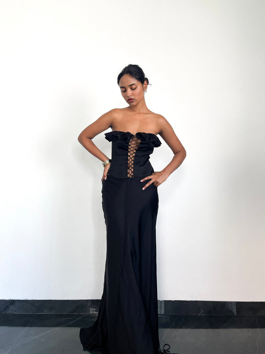 Calypso ruffled corset - Black